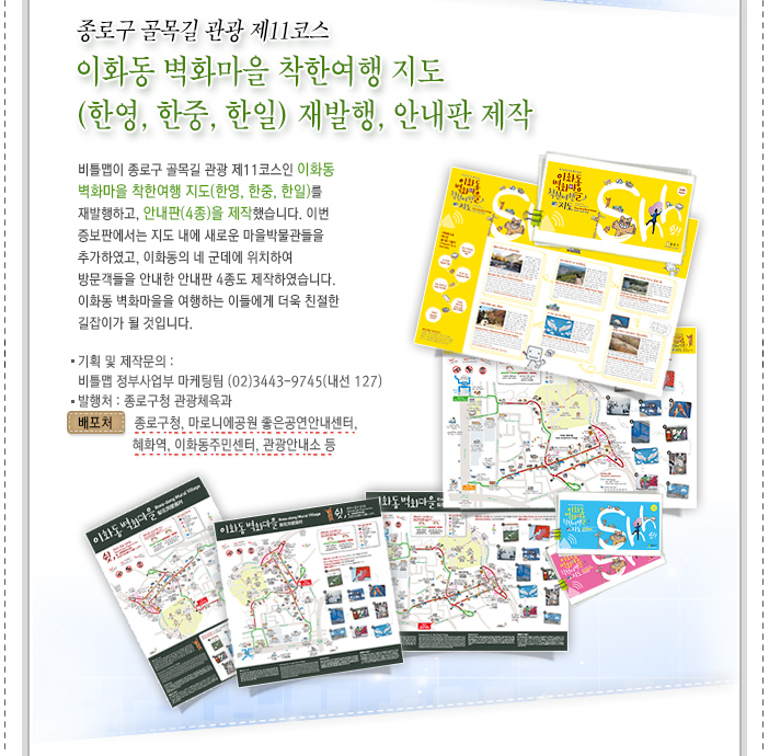 - 종로구 골목길 관광 제11코스!! 이화동 벽화마을 착한여행 지도(한영, 한중, 한일) 재발행, 안내판 제작