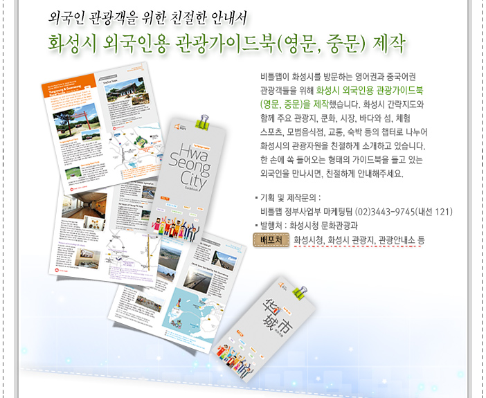 - 외국인 관광객을 위한 친절한 안내서!! 화성시 외국인용 관광가이드북(영문, 중문) 제작