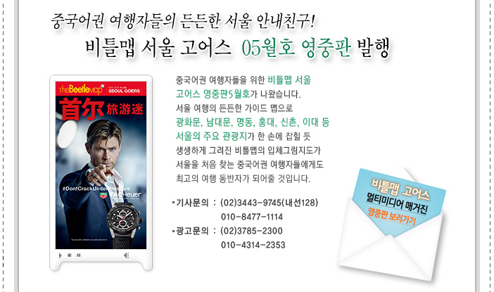 - 중국어권 여행자들의 든든한 서울 안내친구! 비틀맵 서울고어스 2016년 05월호 영중판 발행